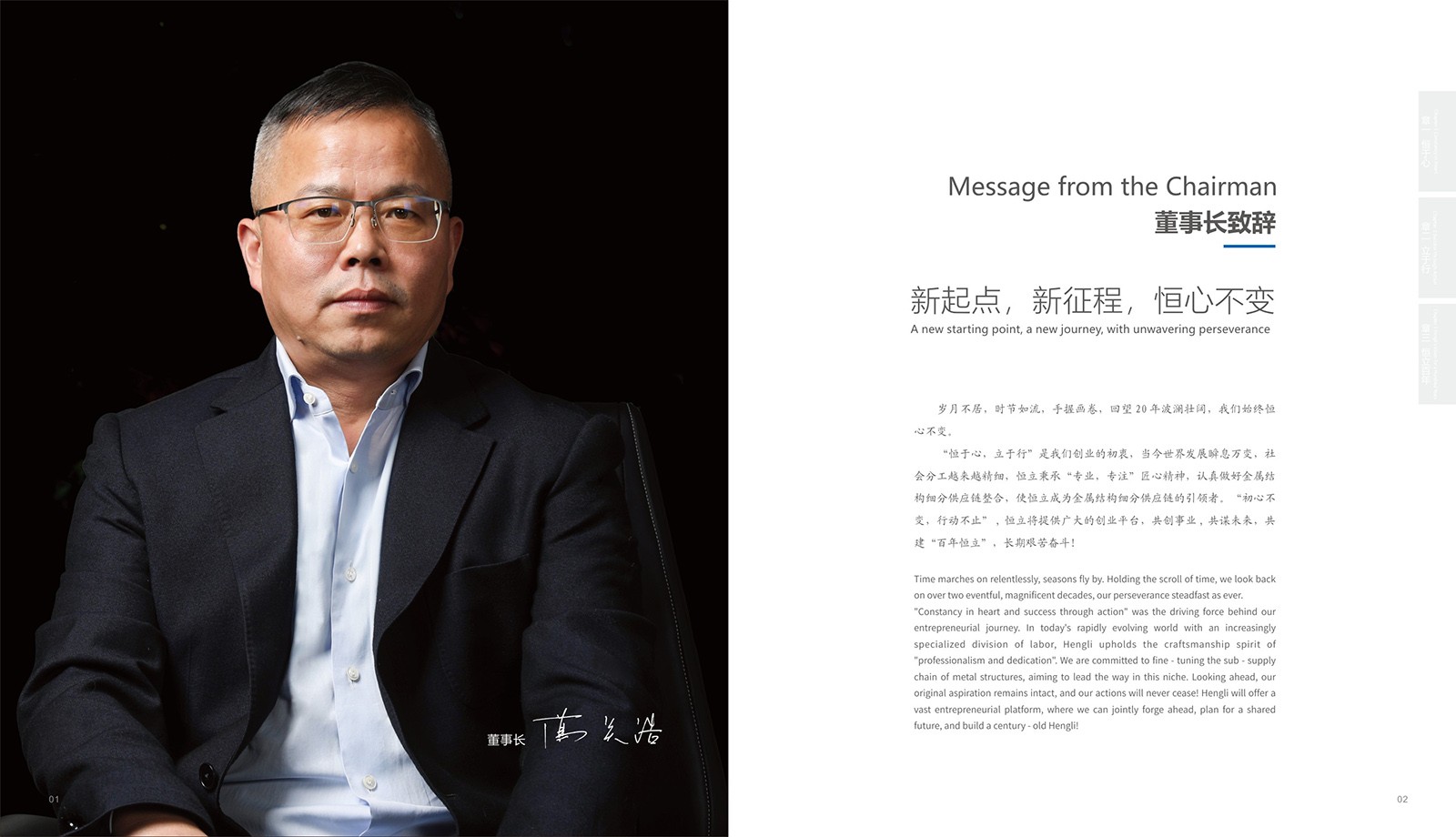 確定設(shè)計(jì)要求:設(shè)計(jì)團(tuán)隊(duì)經(jīng)過(guò)與甲方充分溝通,明確畫(huà)冊(cè)主題、內(nèi)容范圍、風(fēng)格偏好等。以“恒與心,立于行,恒立百年”為核心主題,把畫(huà)冊(cè)分成三個(gè)篇章,在內(nèi)容上會(huì)涵蓋公司概況、